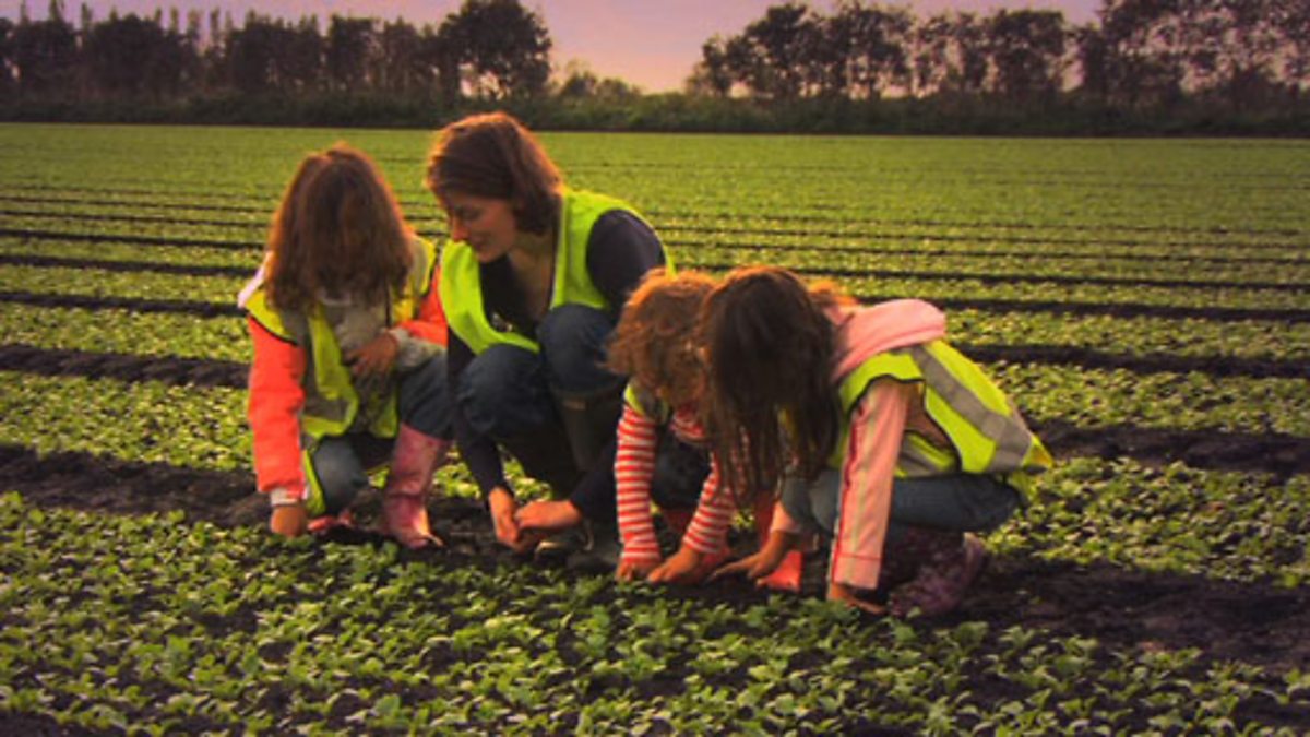 Three children collect parsnip seeds from a plant grown last year on their allotment. They prepare the soil, then plant and water the seeds, explaining why this is important. They dig up a parsnip and prepare it for eating. Then they visit an enormous farm in Norfolk where radishes are grown. The crop is harvested and prepared while the farmer explains the processes involved.