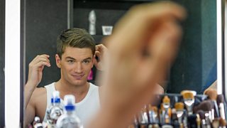 David Witts, aka Joey Branning, checks that his hair is OK for the upcoming filming.