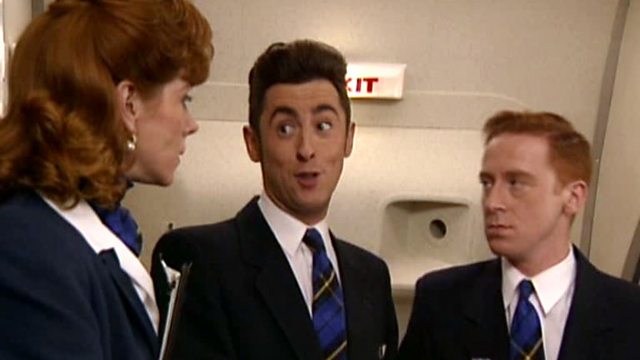 Comedy series about the crew of a cut-price airline shuttle between Prestwick and Heathrow. Air stewards Sebastian and Steve work for awe-inspiring chief purser Shona, and they are all in the hands of the clueless Captain Duff. It's Steve's 30th birthday, and he and Sebastian make a concerted effort to bale out of Air Scotia.