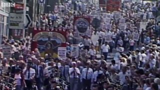 The dispute between the miners' union and Margaret Thatcher's government divides the nation and leads to mass protests and pitched battles.