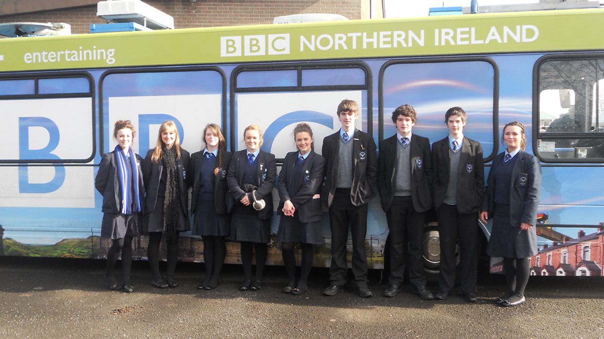Buntaistí Choláiste Naomh Pádraig i Machaire Rátha á léiriú i bhfoirm "rap" ag daltaí na scoile.