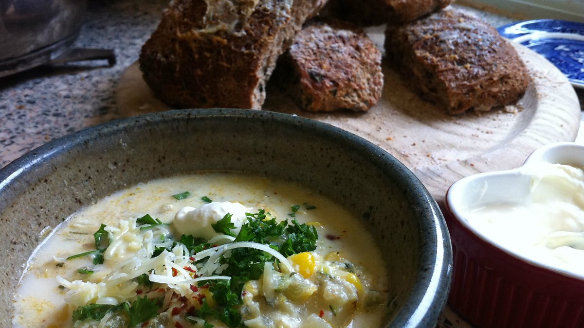 The perfect winter warmer for the snowy weekend, sweetcorn chowder.
