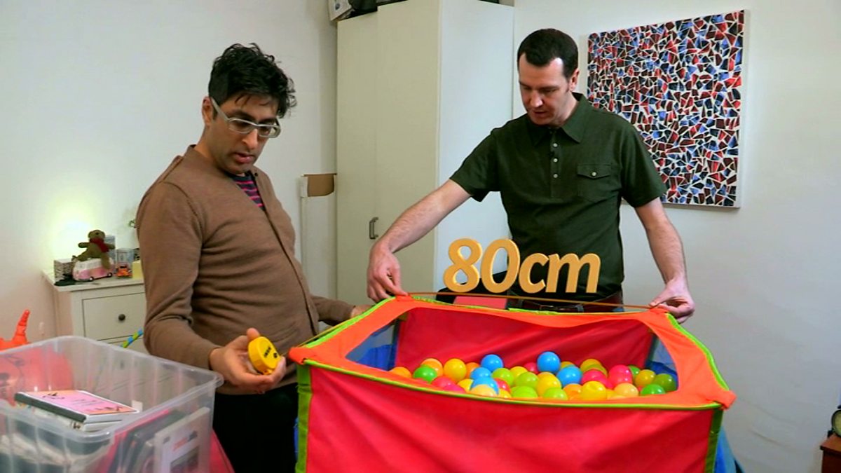 Sanjeev Kohli needs to put items into storage and so needs to calculate the volume. Together with a removal expert, Gavin Deanville, he measures several items and calculates the volume of each. Features calculations of the volume of a cuboid and a cylinder.