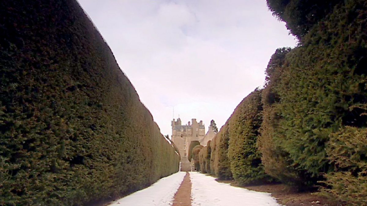 Chris visits Crathes Castle Gardens near Banchory, Aberdeenshire, where the covering of snow made it uniquely possible to appreciate the form, structure and design of the garden. Chris took to the roof of Crathes Castle to get a birds eye view of form, structure and design of the garden. He also looked at the hedges, walls and boundaries and how they can have a huge effect on the narrative of a garden.