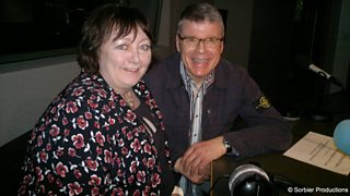 Iain MacIlleMhìcheil a' còmhradh ri Faye NicDhiarmid.