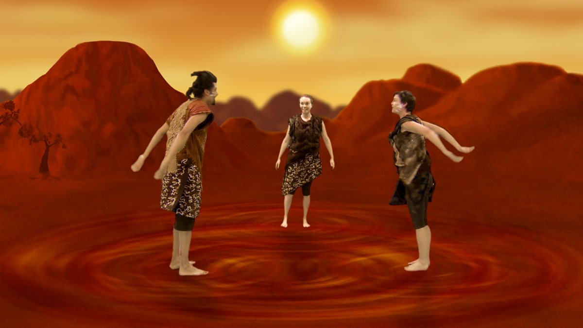 Three dancers dance to three pieces of classical music in animated, virtual environments - invoking the element earth.