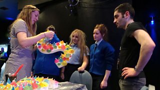 The amazing production of the backdrop for the Live Lounge at Radio 1's Academy 2013