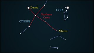 The star Albireo can be resolved to a colourful blue star and a yellow companion.