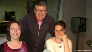 Iain Mac 'Ille Mhìcheil a' còmhradh ri Hester Levack agus Fiona NicDhùghail.