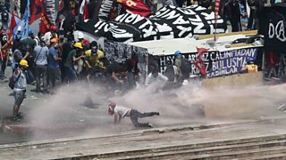 Turkey protests: "Police out of nowhere have fired gas bombs"