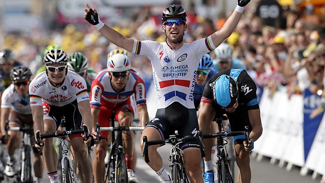 Simon Brotherton and Rob Hayles commentate as Britain's Mark Cavendish wins the Tour de France Stage 5 sprint in Marsaille.