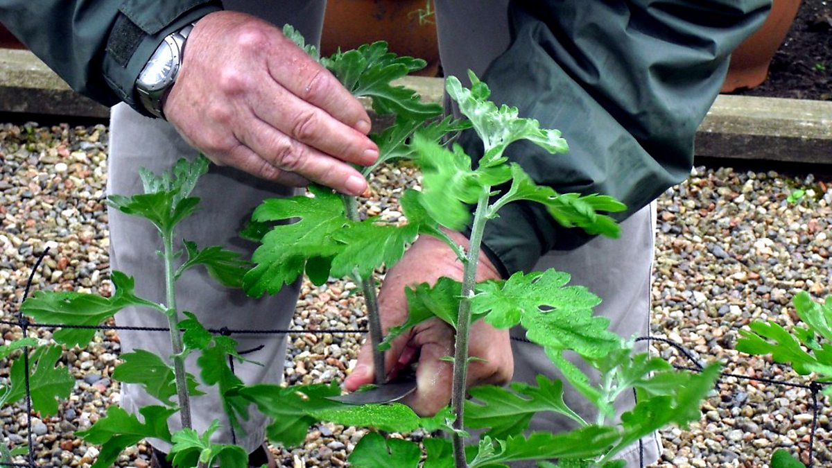 Jim takes the top off the chrysanthemums