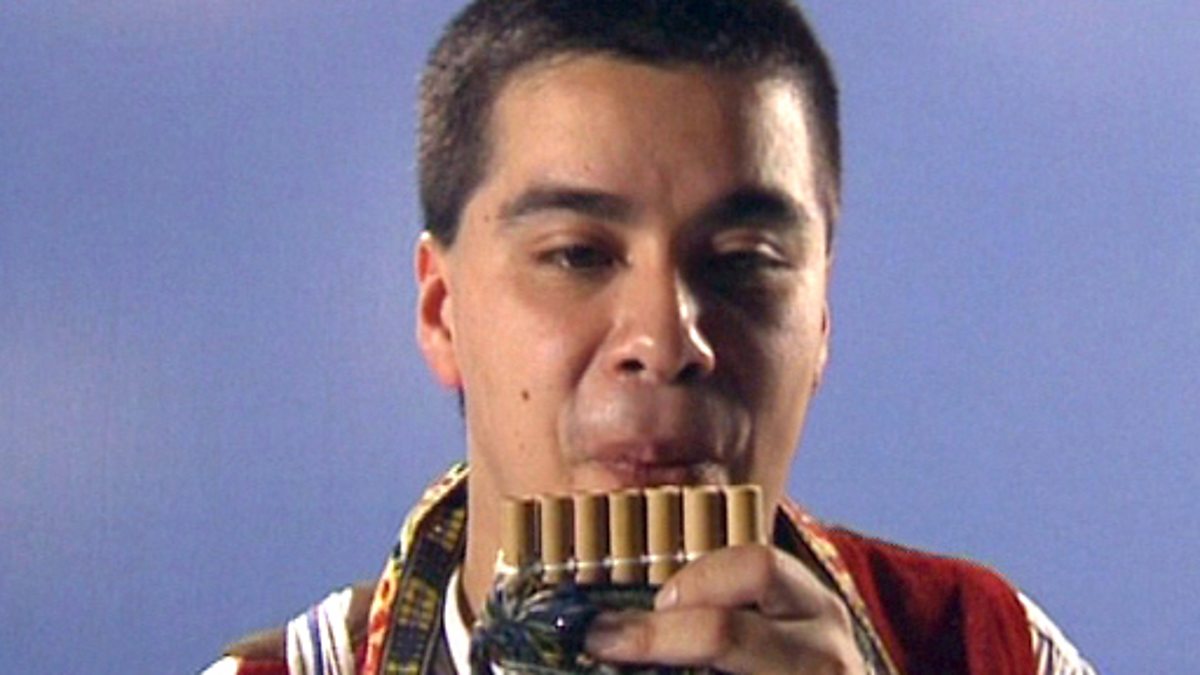 Professor Allegro introduces South American music and the work of Mauricio Venegas. Aerial shots of a mountain range are described in a descriptive poem. At the end of the poem a South American group plays Viento Cantor, and Mauricio Venegas is introduced as the composer. The bombo and the panpipes are used to create the South American sounds. Children use objects to find low sounds to replicate the bombo and then high sounds on tuned instruments.