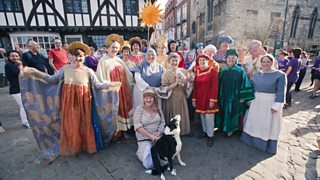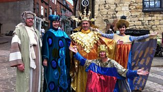 William Wright talks to the Lincoln Mystery Players ahead of the Lip Dub Lincoln rehearsal