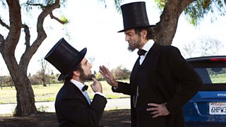 Harvey Krupp delivers a rousing speech to Tom and his platoon at a Civil War reenactment.