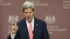Photo: U.S. Secretary of State John Kerry answers reporters questions on Syria at a press conference in London.