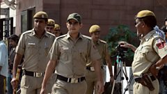 (Photo: Indian police outside The Saket Court Complex in New Delhi ahead of the arrival of the accused in a gang rape case. Credit: AFP/Getty Images)