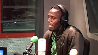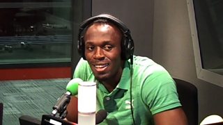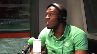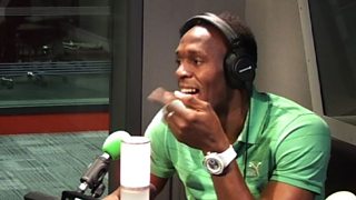 At the listeners request, Usain Bolt sings a couple of songs in the studio.