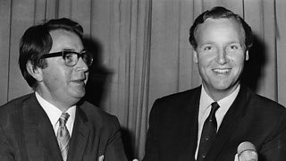 Nicholas gives new panellist Roy Walker a lesson in Just a Minute.