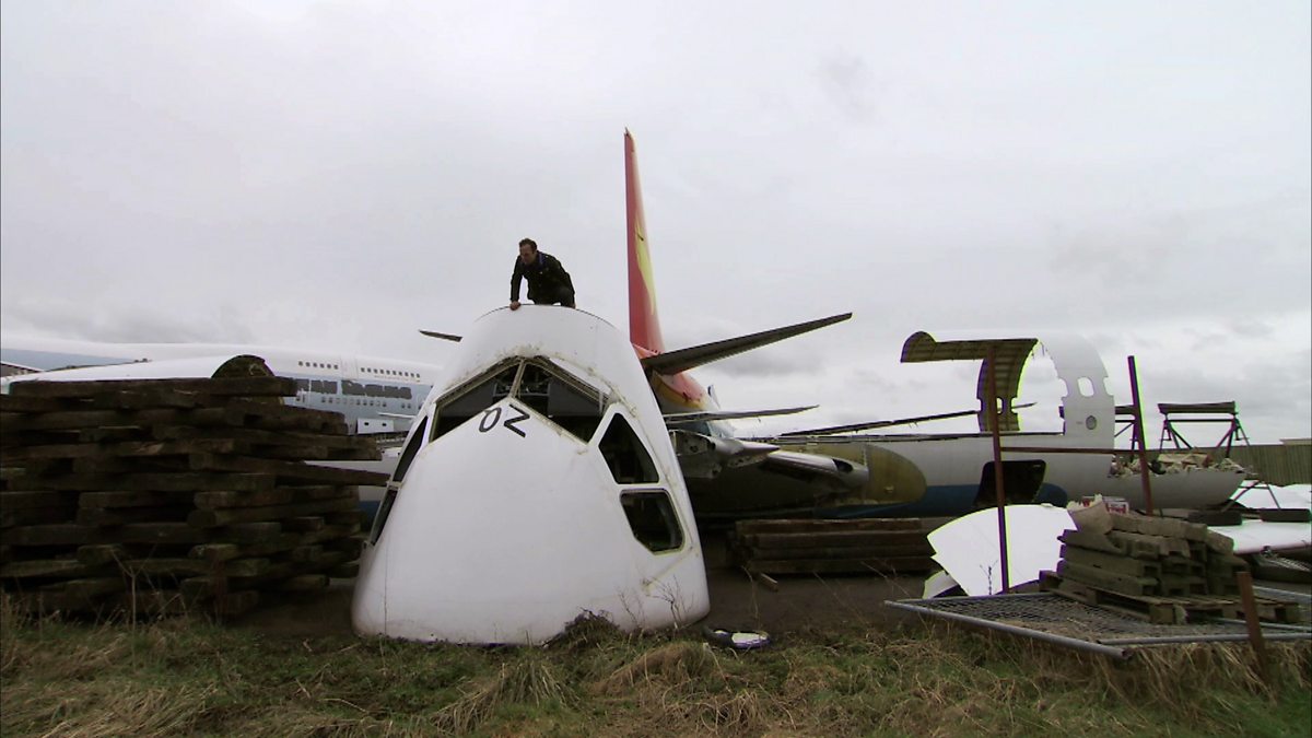 Piers Taylor challenges Jane and Andy's ideas of what a sustainable building could be, by suggesting they recycle whole sections of aeroplanes to finish their build more quickly.