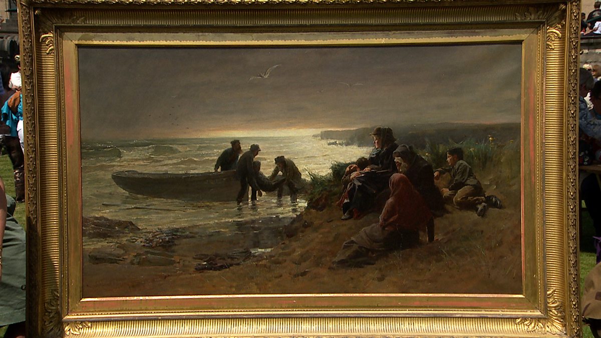 This painting by Edinburgh artist J. Michael Brown depicts the tragic aftermath of a terrible storm in Eyemouth in 1881.