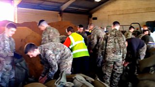 Army filling sandbags for flooded Thames Valley—5 Live Drive, 11/02/2014