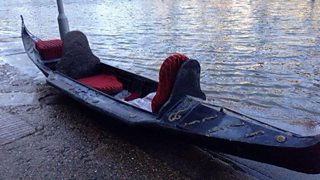 A gondola, once used by Sir Elton John, ferries villagers around flooded Datchet.