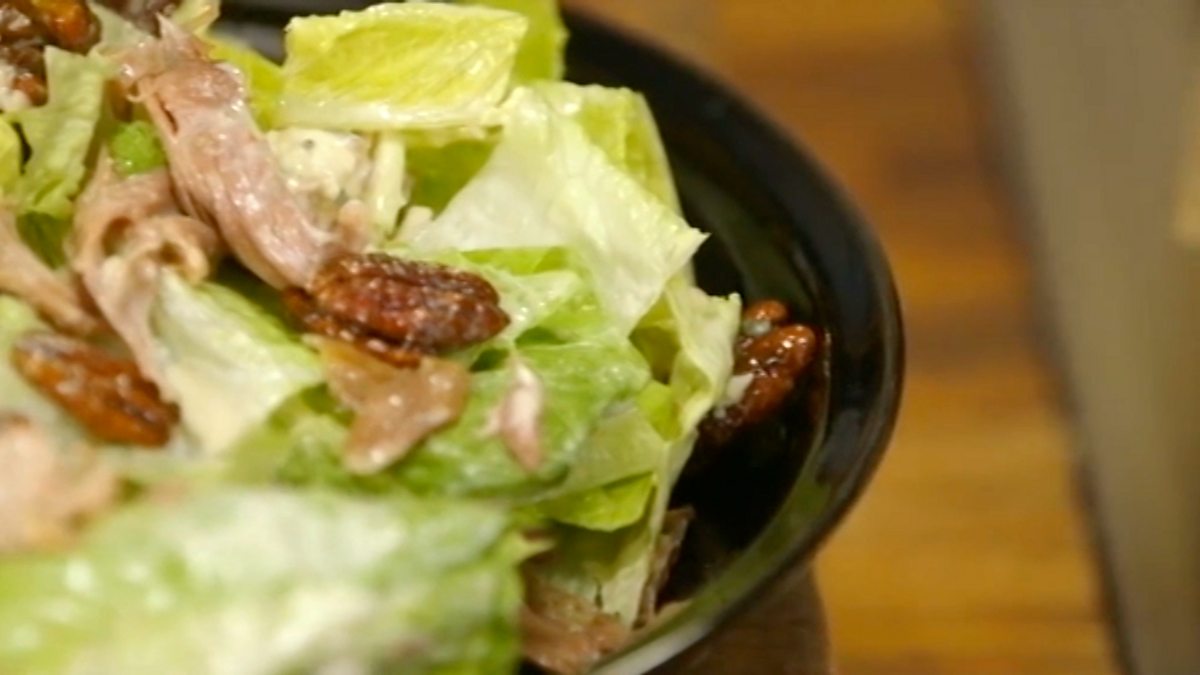 This is a simple combo of ready-made confit duck legs and zingy, cheesy salad dressing with added crunch form caramel-coated pecans - a super tasty meal for two.