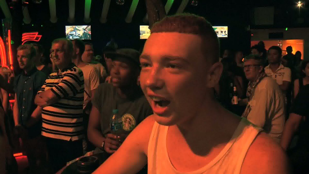 Mum Jan and friend Andi spy on Billy at a wet t-shirt show.