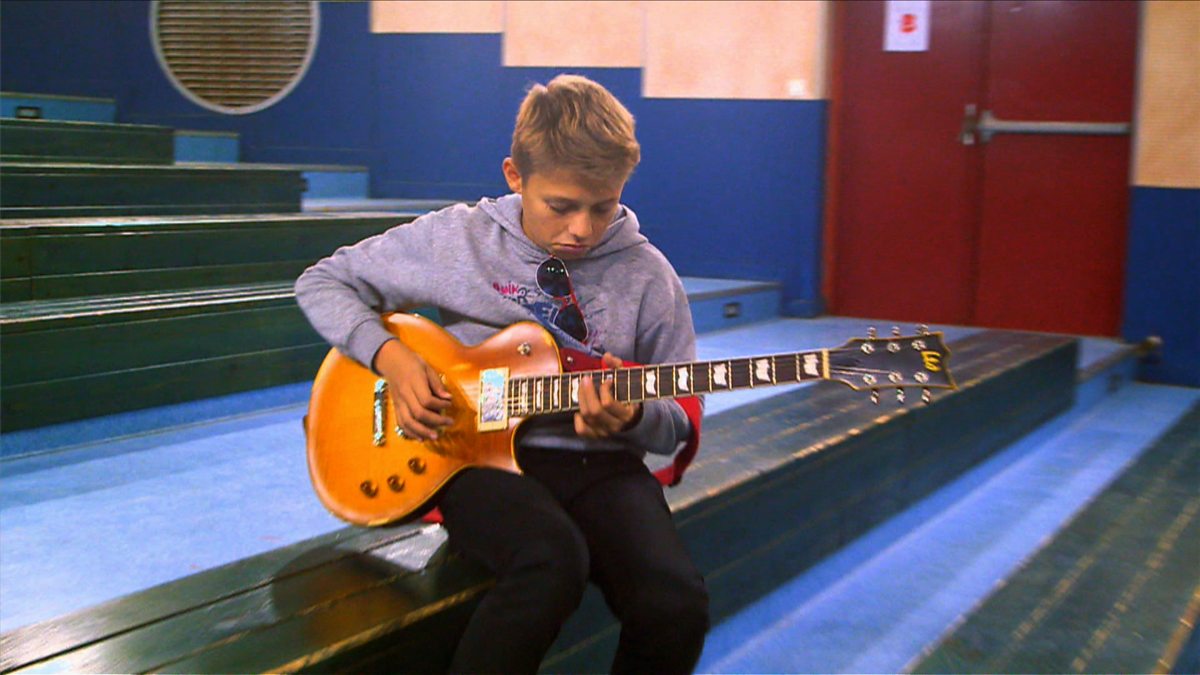 They ask the question Tu aimes faire quoi? and find out about a wide variety of hobbies including guitar, piano, listening to music, reading, cycling, skateboarding, scuba diving, horse riding, drama, drawing and playing the drums. The girls meet up with Ulysse who is practising the guitar. He plays well. Ben then has to say goodbye to his friends as his mother has arrived to take him to his swimming lesson. The girls realise that Ben is not such a good swimmer after all.