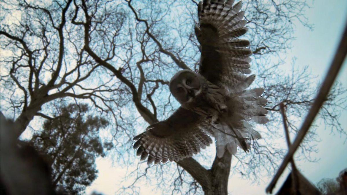 This owl is trained to use its highly accurate hearing to pinpoint a hidden buzzer.