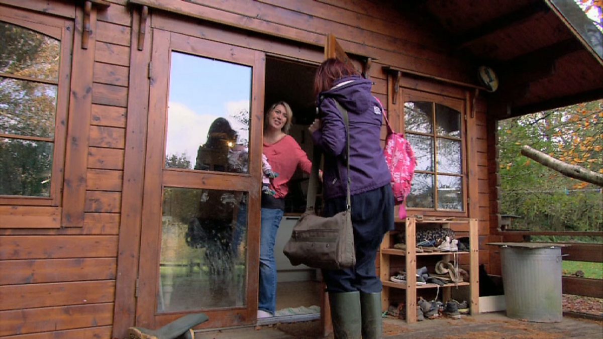 Midwife Caren Thomas, having joined the community team after 13 years on the ward, dons her wellies to negotiate fields and gates to visit new mum Michelle.
