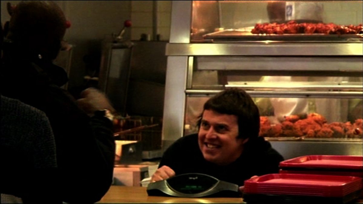 The Impractical Jokers are working in a chicken shop and must do and say everything the other Jokers tell them through a hidden ear piece.