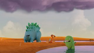 The Dinopaws almost get swept away on a windswept plain.