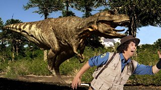 Andy travels back 65 million years to the time of Tyrannosaurus rex.