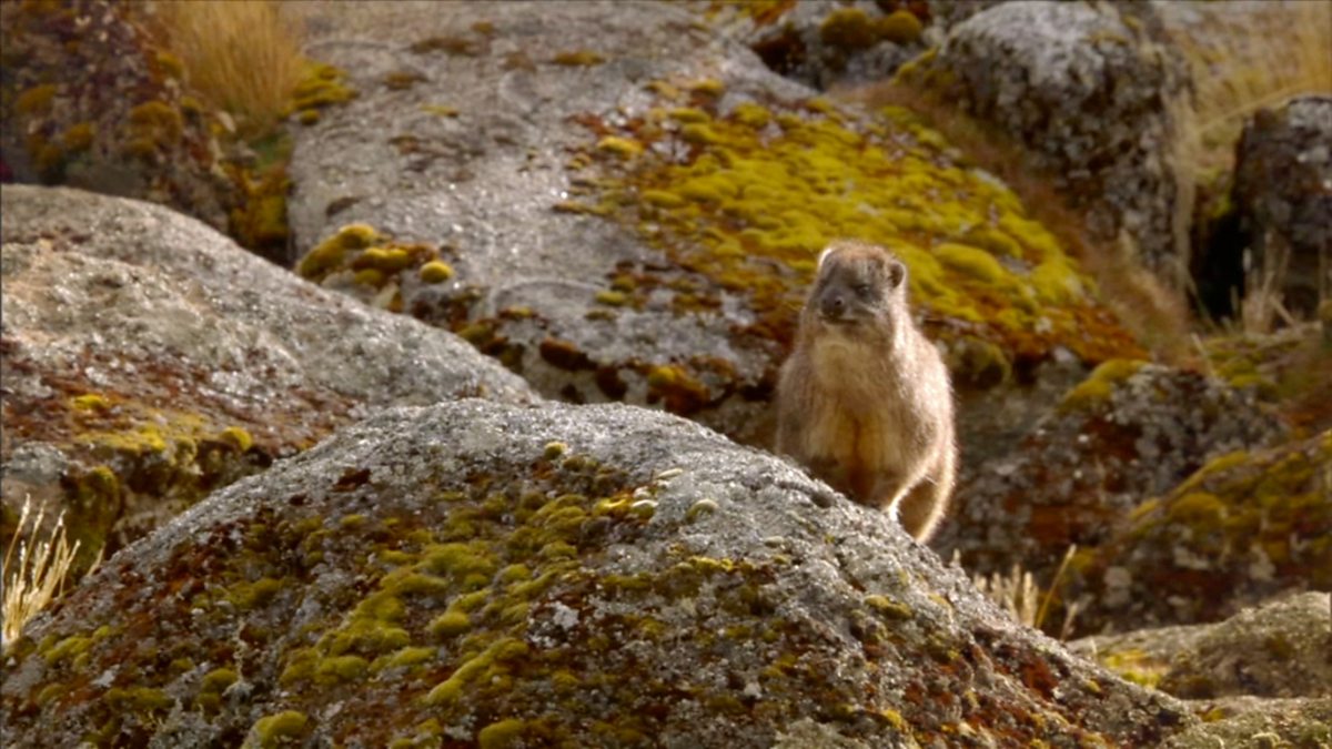 A rock hyrax relies on an inbuilt sun-visor to survive a black eagle attack.
