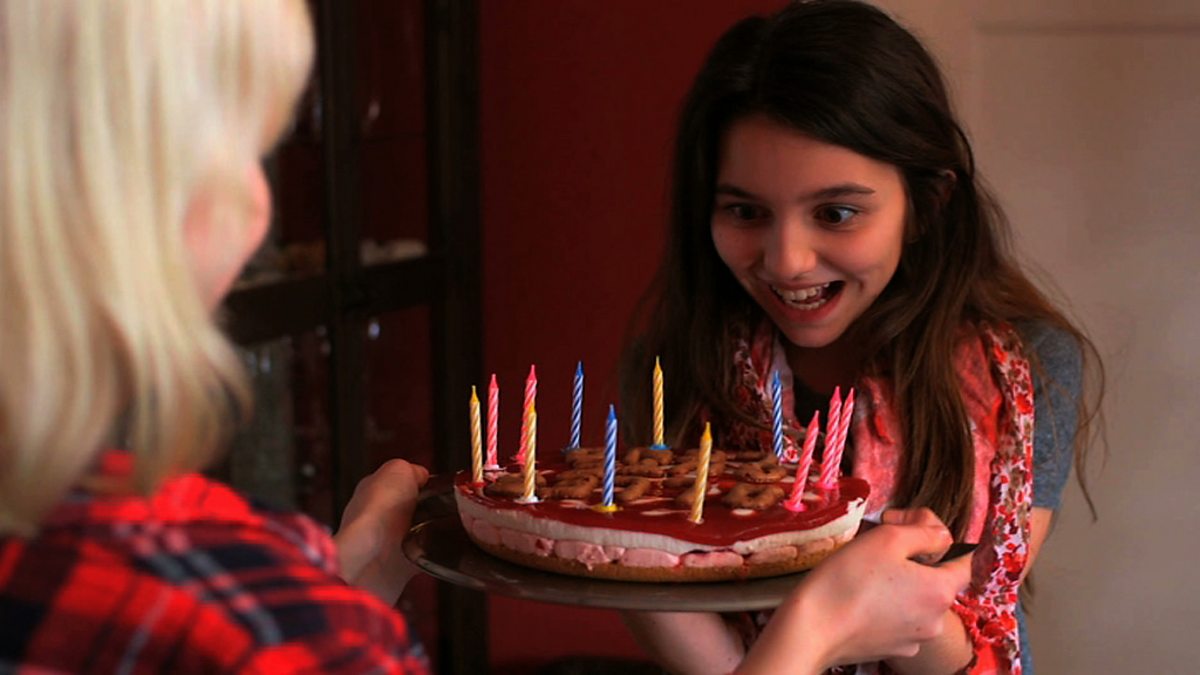 Charlie is keen to practise and improve his German. He links up online with friends in Berlin who are busy making a surprise birthday cake for Lena. She is celebrating her twelfth birthday. Charlie uses his knowledge of numbers 1 – 12 to help count out the correct number of candles. The friends tiptoe quietly to Lena’s flat and present her with the cake. Lena is delighted and slightly overwhelmed. The friends then sing the traditional birthday song 'Hoch soll sie leben'. Charlie holds up a birthday card he has been making for Lena and wishes her Happy Birthday 'Herzlichen Glückwunsch zum Geburtstag!' The friends are invited inside to meet members of Lena’s family. Charlie is asked to take a photo of Lena with her friends and family.
