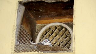 Colomenod wedi nythu mewn wal tŷ tafarn yn Abergele - llun gan Sion Jones