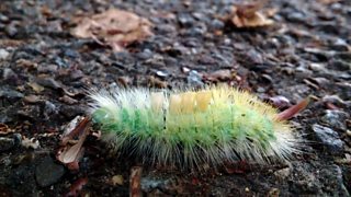 “Ydy'r lindysyn ’ma yn gyffredin yng Nghymru? Ydy’n saff i'w gyffwrdd?”