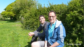 Dolydd y Botanegydd Trevor Dines a Math Williams yn ei holi