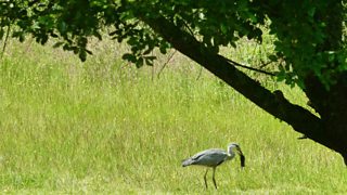 Creyr Glas wedi bachu Twrch Daear - Llun gan Meredydd Morris o Baradwys, Môn,