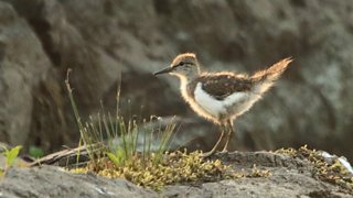 Pibydd y Dorlan ifanc ar lan Llyn Trawsfynydd - Llun gan Keith O'Brien.
