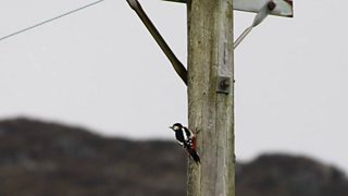 Cnocell y Coed ar bolyn teliffon - Keith O'Brien.
