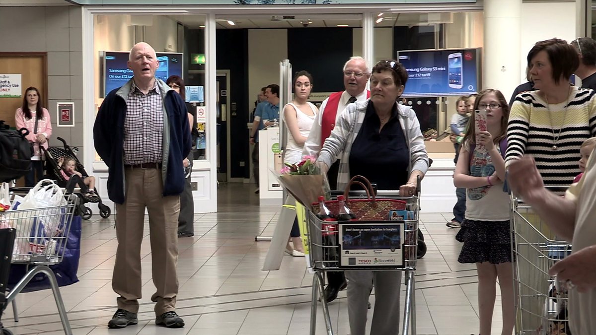 The Donaghadee Male Voice Choir surprise their Musical Director's grandson by arranging for him to be present in Bloomfield shopping centre as the choir take part in a flashmob.
