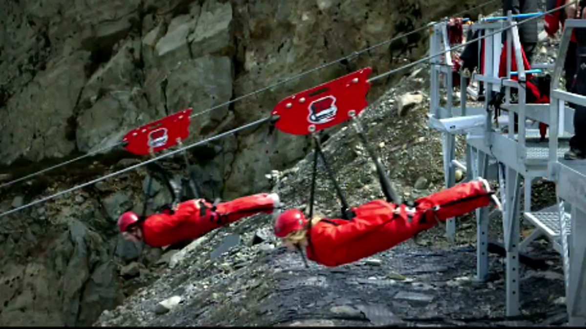 Matt Dawson and Phil Tufnell take on the fastest zipwire in Europe.