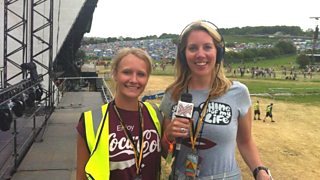 Highlights of Laura Rawlings' first day at the Glastonbury Festival 2014.