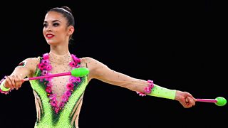 Watch coverage of the rhythmic gymnastics finals at the SECC Precinct.