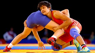 Coverage of the men's wrestling semi-finals from the SECC Precinct
