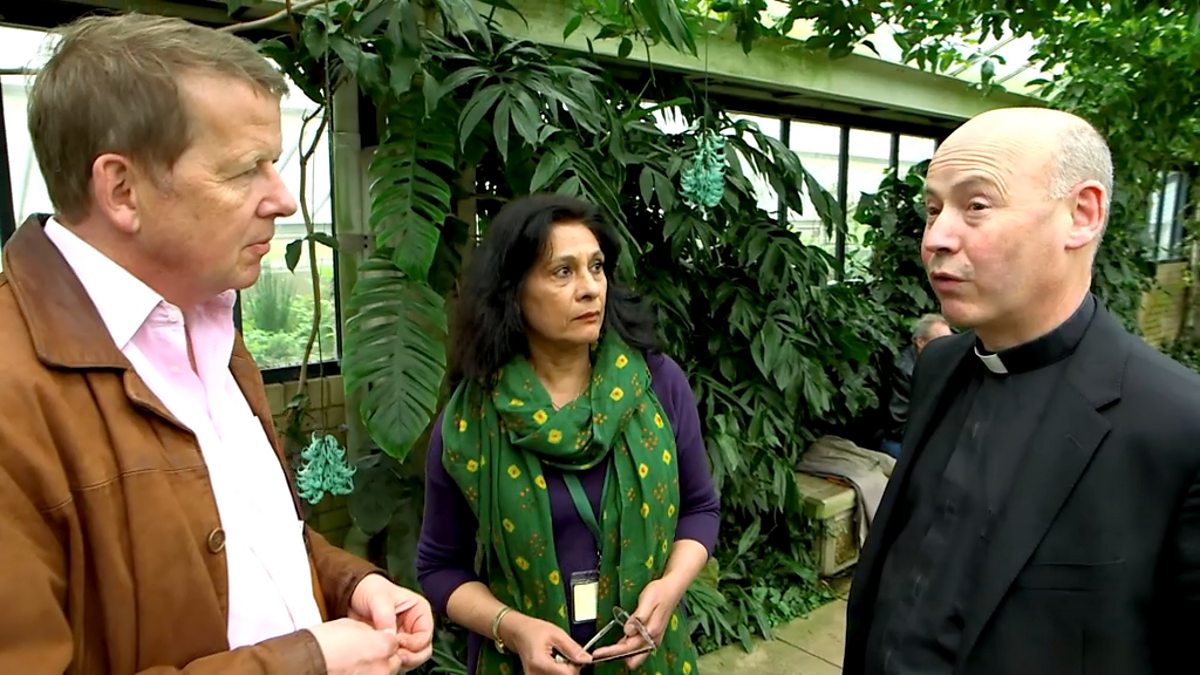 Shahina & Father Nigel shows Bill some of the plants that are going to be on the faith trail and explains the religious significance of these plants at Kew Gardens.