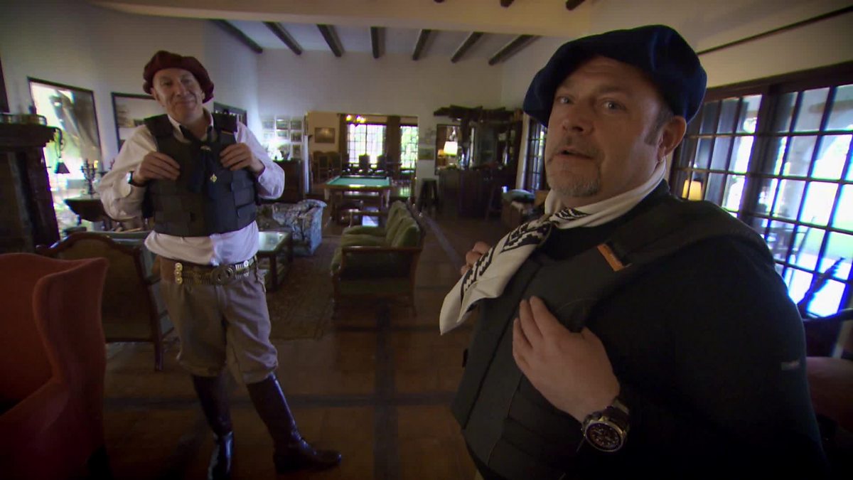 John Thomson and Simon Day try on their riding equipment before going out for their first day as novice gauchos.